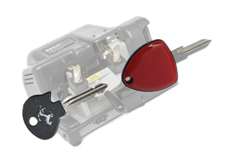 The Ferrari Cavallino Style Key is not simply a cheaply made reproduction. It is made entirely in the USA using high quality materials and manufacturing methods. The key blank itself is nickel-plated brass. Nickel-plated brass extends the key life and helps maintain a "like new" look for a longer period of time. The bow of the key is encapsulated in high strength black polycarbonate. Once encapsulated, the key is then placed into a double-cavity plastic injection mold and the outer shells are over-molded using colorized acrylic thermoplastic ... the same material is often used for motorcycle and race car windshields as well as aircraft windows and canopies. The encapsulation and over-molding process produces a homogeneous key head that is impact and scratch resistant. A recess on one of the outer faces allows for the placement of a small metal emblem. This manufacturing method is costly, but assures that the key head has excellent cosmetics, is completely homogeneous and securely holds the metal key.